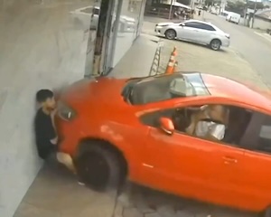 【動画】ペダルを踏み間違えたおばちゃんが男性を壁との間に挟んでしまう事故。