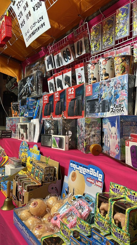 【画像】祭りにあるこういう露店の景品って本当に当たるんか?