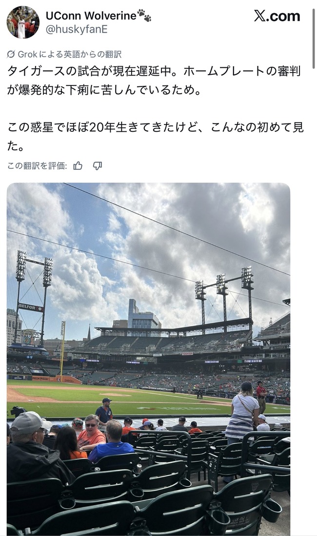 MLBさん、主審が下痢のため試合中断