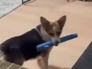 犬がオモチャの棒を咥えていた。これはボクのだからね! → 同居犬とこうなります…