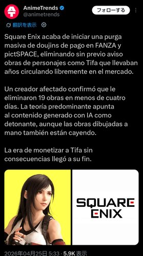 【朗報】スクエニさん、ティファの有料同人誌を片っ端から削除してしまうwwwwwwwwww