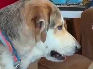 お父さんがソファで昼寝していた。これを持ってくれば起きるかなぁ → 無言で犬はこうします…