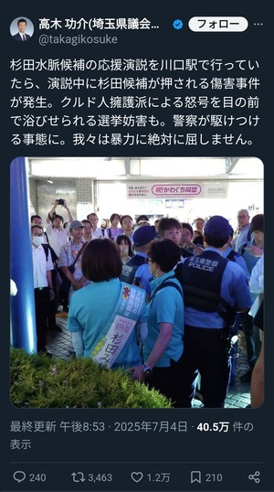 【悲報】杉田水脈、演説中に傷害事件発生!!!!!!
