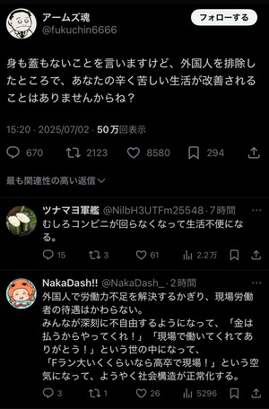 【速報】自民党「外国人を排除しても国民の生活なんぞ良くならない」