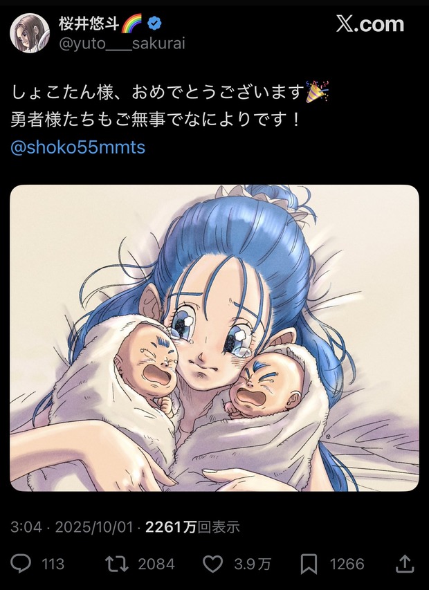 【画像】しょこたんの出産を鳥山明風イラストで祝福したツイッタラー、叩かれてるwwwwwwwwwwwwwwwwwwww