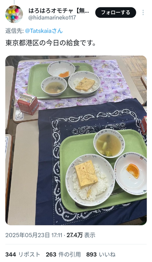 【画像】東京港区の小学校給食 限界突破wwwwwwwwww