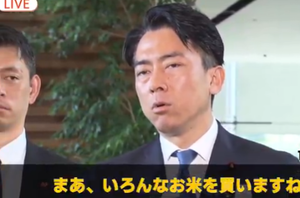 【悲報】記者「普段お米は何キロくらい買ってますか?」⇒ 小泉進次郎「色んなお米を買います。消費者目線で政策でお返ししたいと思ってます」