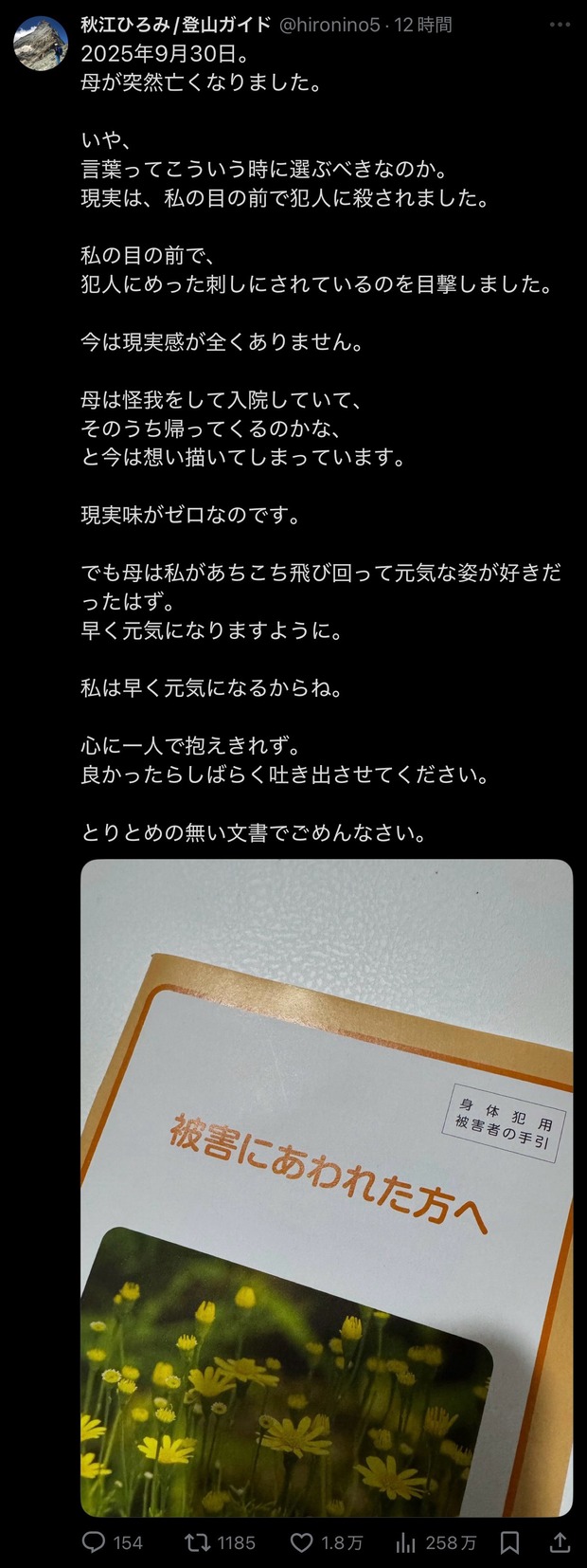 【画像】ツイッタラー「私の目の前で母がめった刺しにされて殺されました。」