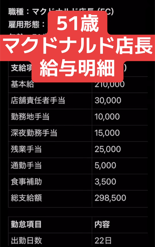 【画像】マクドナルド店長の給与明細、流出w w w w w w w w w w w w w