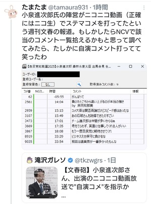 【進次郎終了速報】小泉陣営、ニコニコ動画でのステマコメント要請報道を認めるwwwwwwww