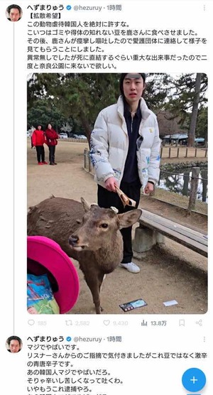 【画像】韓国人さん、奈良公園の鹿に青唐辛子を食べさせ泡吹いて痙攣させる・・・・・・