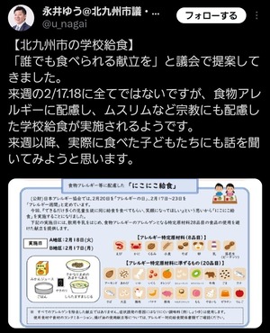 【画像】 ムスリム給食、北九州市が否定するも暴露されるwwwwwww 北九州市議「ムスリムにも配慮した学校給食を実施」