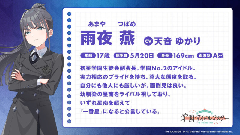 【朗報】雨夜 燕、2025年11月に実装決定!初報PV公開!初星学園生徒会副会長にして学園No.2!!【学園アイドルマスター】