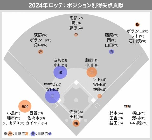 データスタジアム「ロッテの穴は投手、捕手、一塁手、二塁手、三塁手、右翼手、中堅手、指名打者」