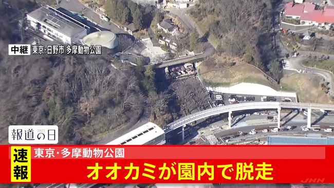 多摩動物公園でオオカミ脱走