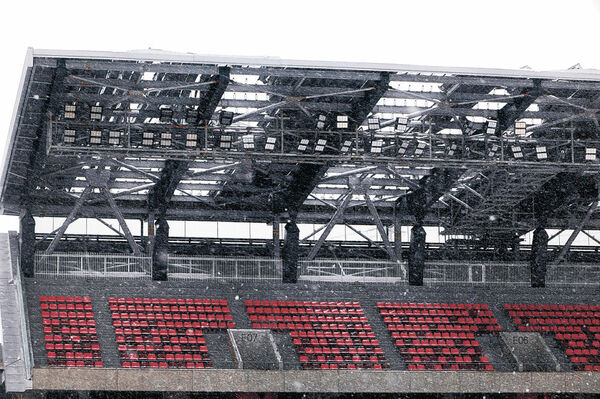 金沢ゴーゴーカレースタジアム(2024年開業)、風で屋根がはがれる・・・
