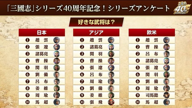 コーエー「三国志で誰好き?」日本人「趙雲」中国人「趙雲」アメリカ人「趙雲」