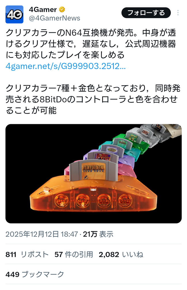 【朗報】ニンテンドー64が高画質でプレイ可能な互換機、発売される