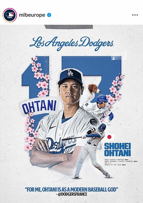 ドジャース大谷翔平、欧州メジャーファンの人気ナンバーワン「現代野球の神様」