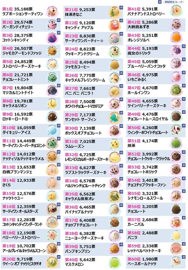 サーティワン、フレーバー総選挙結果発表