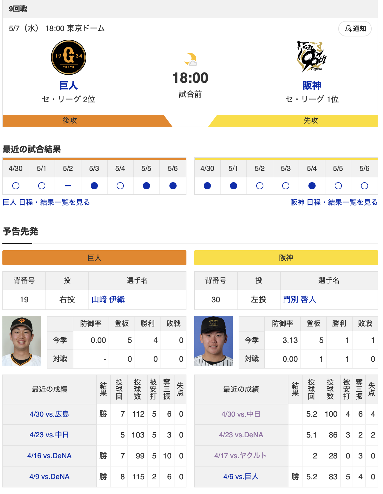 【虎実況】巨人 VS 阪神(東京ドーム)5/7(火)18:00〜