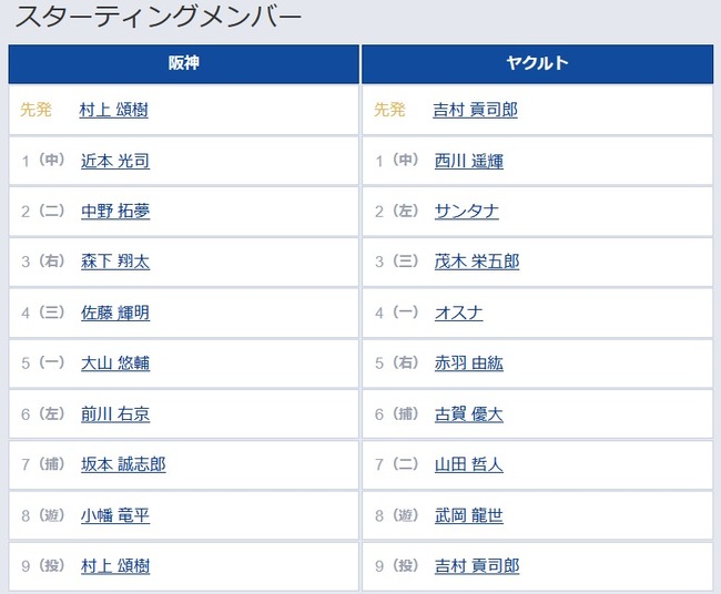 【阪神対ヤクルト5回戦】7(捕) 坂本 誠志郎 8(遊) 小幡 竜平