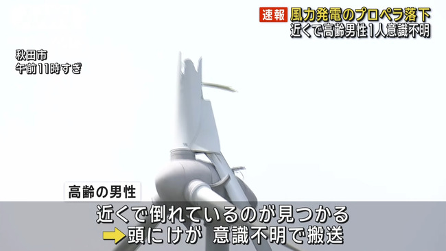 【ニュース】風力発電のプロペラ落下で男性が意識不明
