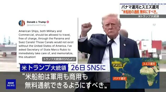 トランプ大統領「パナマ・スエズ運河 米船舶無料にすべき」