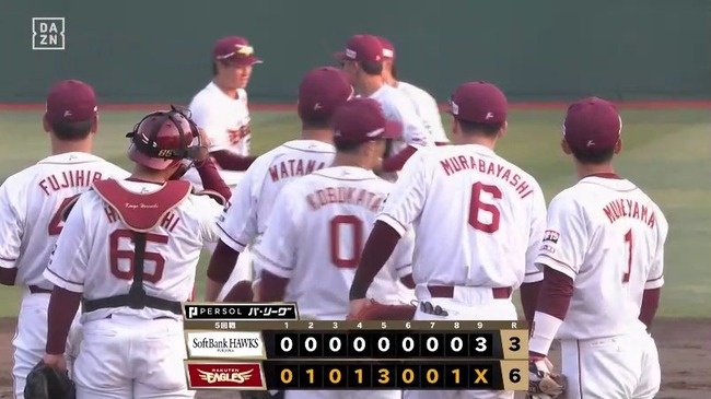 【楽天対ソフトバンク5回戦】楽天が6-3でソフトバンクに勝利し貯金1!阿部が先制ソロ!内は7回途中無失点で今季初勝利!ソフトバンクは連勝3でストップ、再び最下位転落