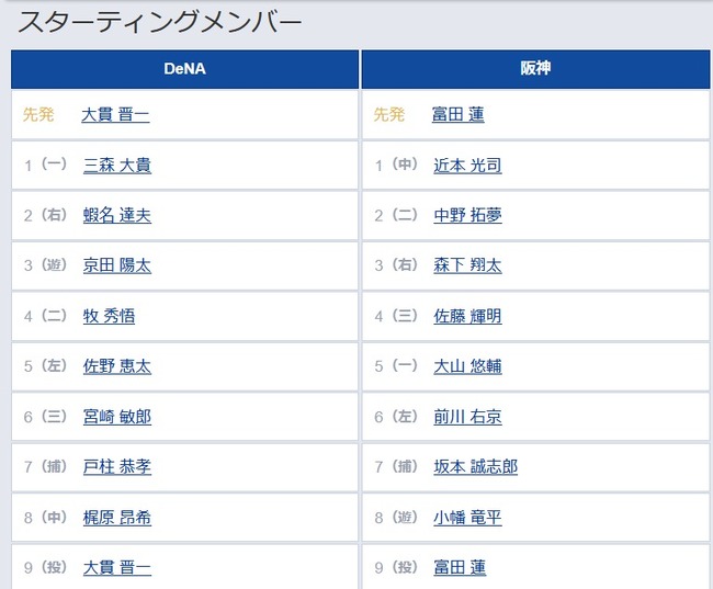 【DeNA対阪神6回戦】7(捕) 坂本 誠志郎 8(遊) 小幡 竜平