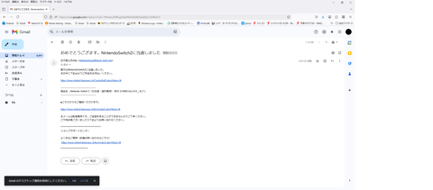 NintendoSwitch2の当選メールきたーァまあ!!!!!