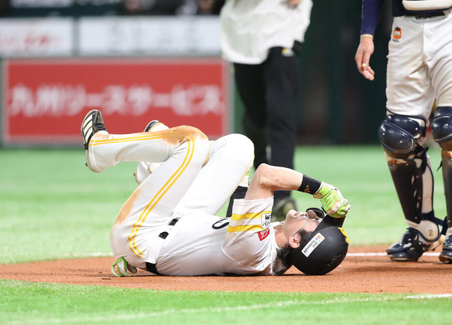 ソフトバンク周東佑京が途中交代 直球が右ひざ付近に直撃しもん絶