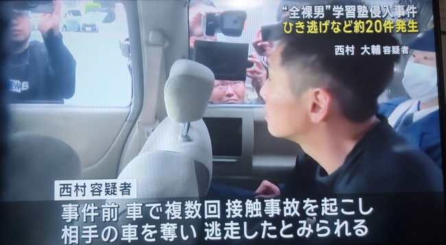 【画像】さいたまの全裸男、逮捕される前1時間の間に交通事故20件以上起こしていた事が判明