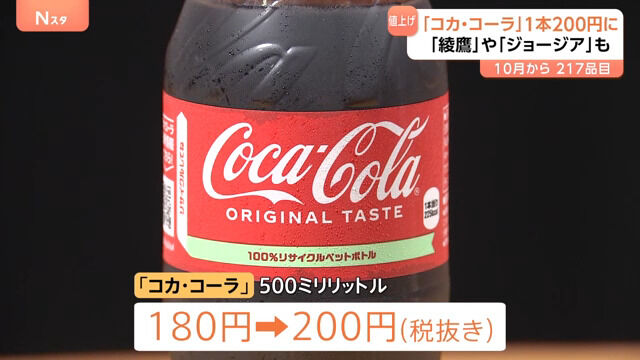 コカ・コーラ500ml、200円(税抜)に 10月1日出荷分から飲料217品目を値上げ