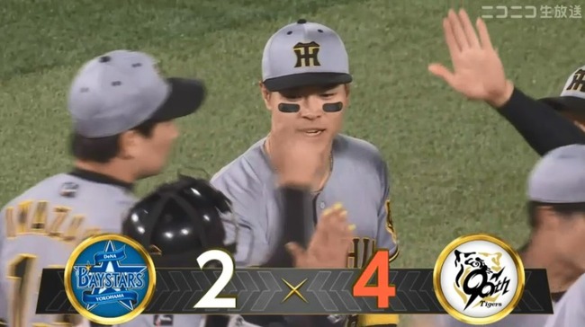 【DeNA対阪神4回戦】阪神、4回に佐藤輝明のタイムリーツーベースでリードを2点に広げる!佐藤は6打席連続安打!!!!!!!!!!!!