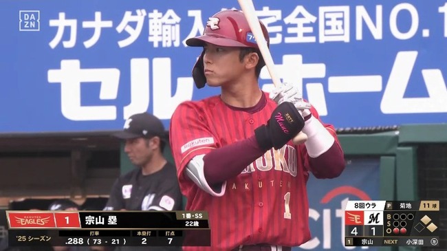 【朗報】宗山塁、圧倒的な才能で一年目から楽天の打者記録を牛耳ってしまうwwwwww