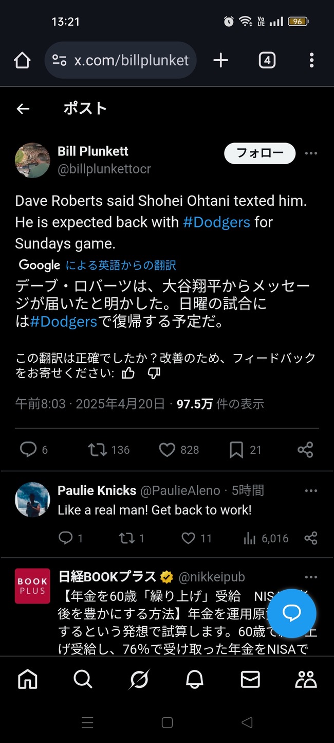 【朗報】大谷翔平さん、産休は終わりで明日の試合から復帰
