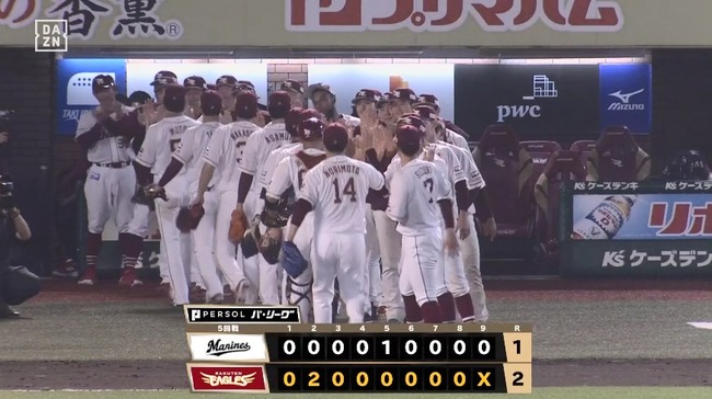 【楽天対ロッテ5回戦】楽天が2-1でロッテに勝利し本拠地連敗を7でストップ!村林適時打など4連打で先制!6人継投で逃げ切る!ロッテは小島が7回103球を投げ2失点も2敗目