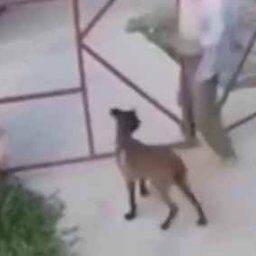 イヌを置いて飼い主が出かけようとしていた。一緒に行きたい!→たたかいが始まりました…