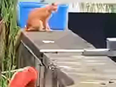 岸辺にいる母ネコが心配そうに何かを眺めていた。あんな所に子猫が! → 男がゴムボートで救出に向かった…