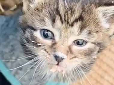子ネコたちが離乳食を食べていた。モグモグのべっちゃべちゃ♪ → いつもこうなります…