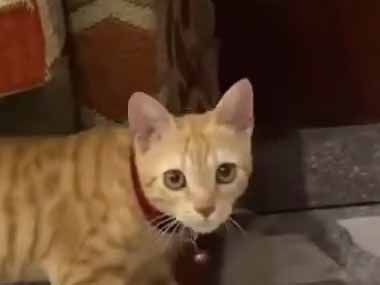 子ネコはベッドの上に登れない。急がば回れ! → 賢い子猫はこうします…