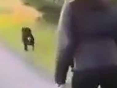 犬と一緒に田舎の道を散歩する。ボクも一緒に行くよ♪ → 大きなお友達、並走します…