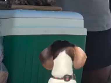 【かわいい】 パパが焼けた肉を切っていた。犬が隣でそれを見ていた → さっきからこんな様子です…