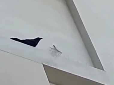 その下を歩く人は危ない! 高い壁の側面に「鳥よけ」を置いていた → カラスはこうします…