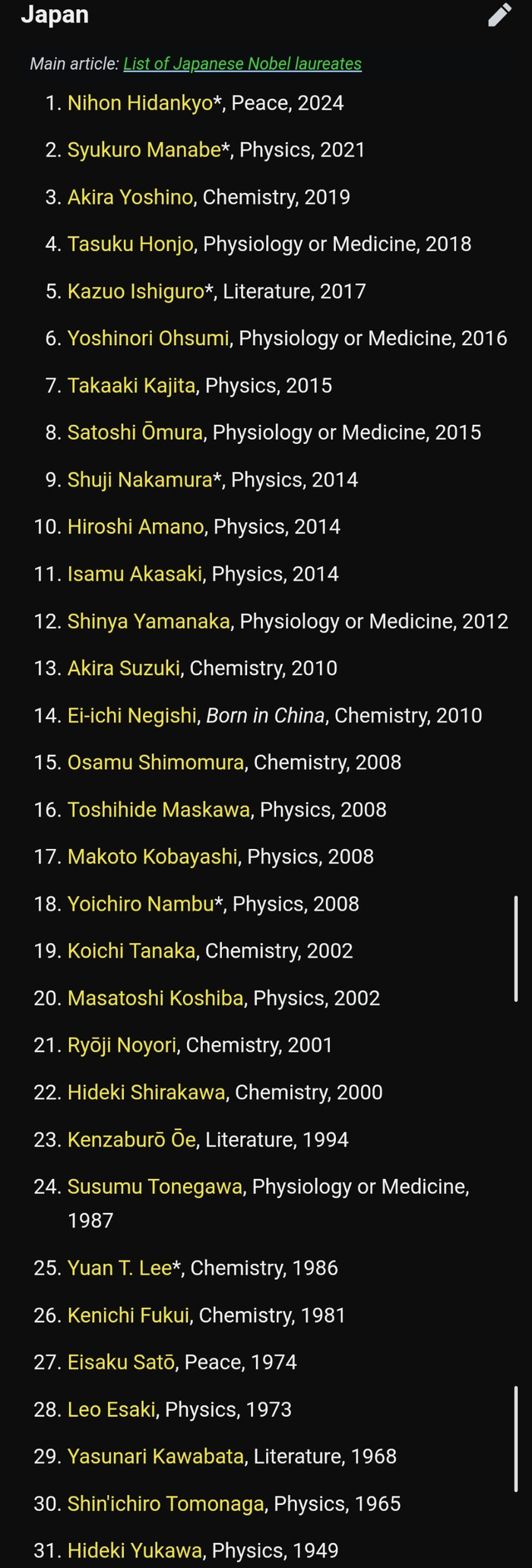 韓国人「日本のノーベル賞受賞者一覧を見て驚いた…長年積み重ねられた研究の成果」