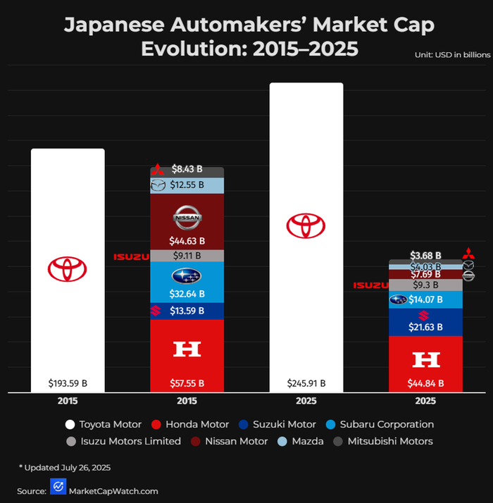 韓国人「日本自動車メーカーの時価総額の比較が話題に」→「トヨタだけ桁違いの時価総額だったw」