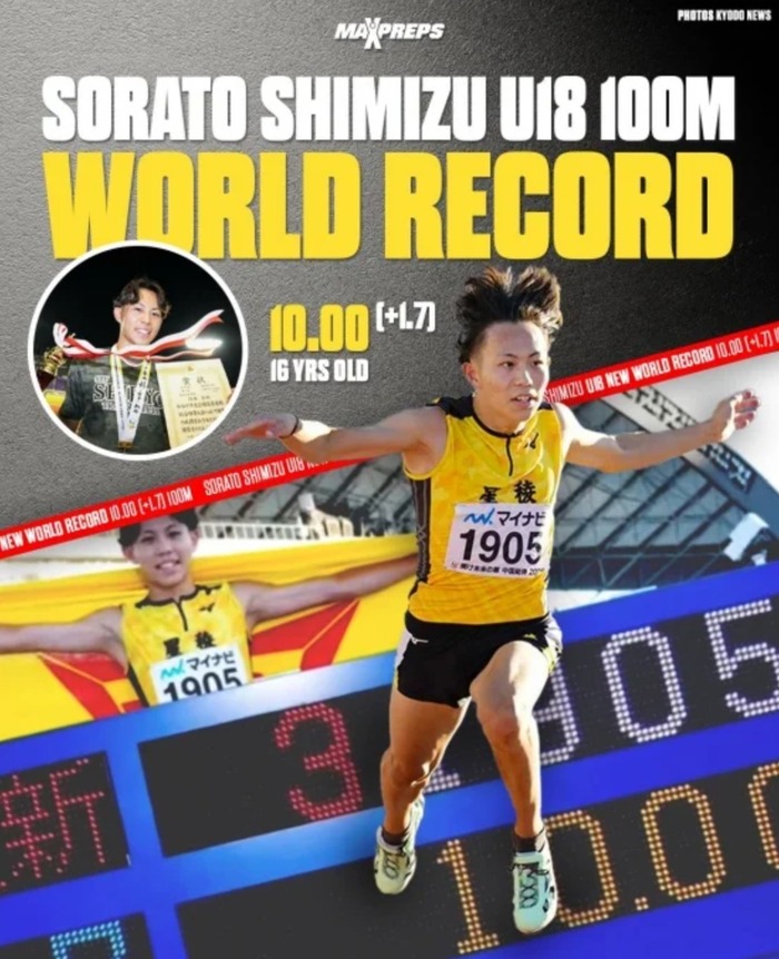 韓国人「日本の高校陸上選手が、男子100m走のU-18部門で世界記録を更新」各国のメディアでも取り上げられる