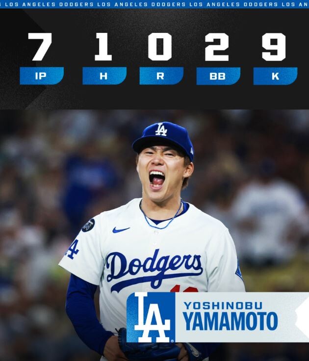 韓国人「山本、7イニング無失点1被安打9三振ピッチング」6回までノーヒット!