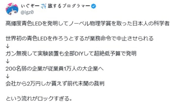 韓国人「青色LED発明でノーベル賞を受賞した日本人科学者の知られざる歩みに驚きの声‥(ブルブル」